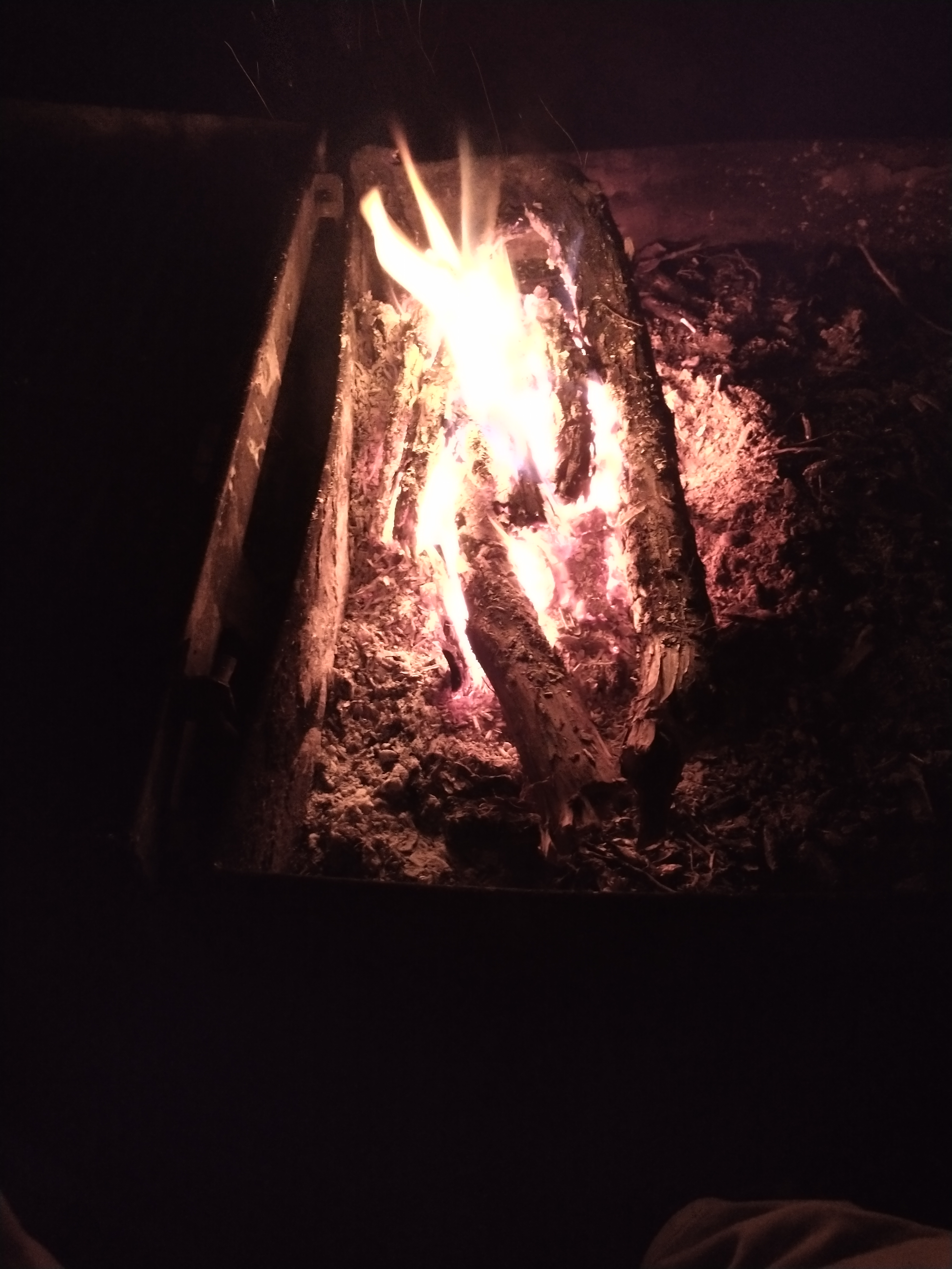 I ate my greens with leftover potatoes and it was delicious. I’ve been toasting a few marshmallows. My fire is dying down and it’s getting to be time to lay down. Likely pick this up tomorrow and add photos when I leave and get a signal….