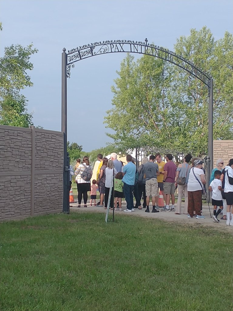 There were a lot of canopies with water and fruit and donation jars for area churches. Mostly staffed by big families of conservative dressed kids. Not a lot of solicitation but some QR codes to support the cause. The newly built chapel which led to all the fuss looked sharp. Before you entered there were teen girls with skirts and scarves for the bare legged and bare shouldered. Yoga pants count as bare legged I learned. It was hot so I had worn shorts but I wasn’t offered a skirt.